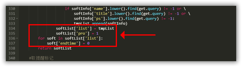 softList['list'] = tmpList这段代码,在其下方添加如下代码: